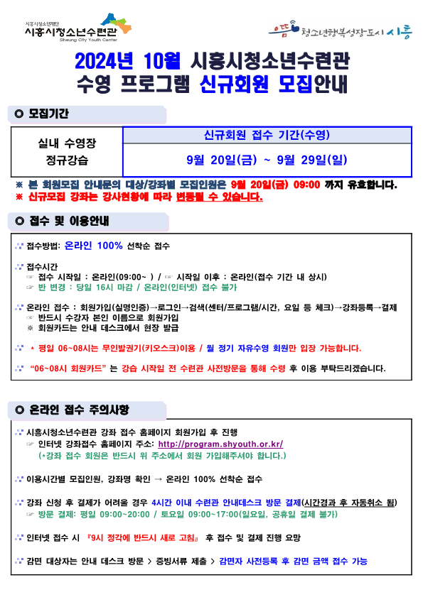 2024년 10월 시흥시청소년수련관 수영강좌 신규회원 모집안내(안)_2.png [ Size : 56.55KB , Down : 4,451 ] 미리보기 다운로드