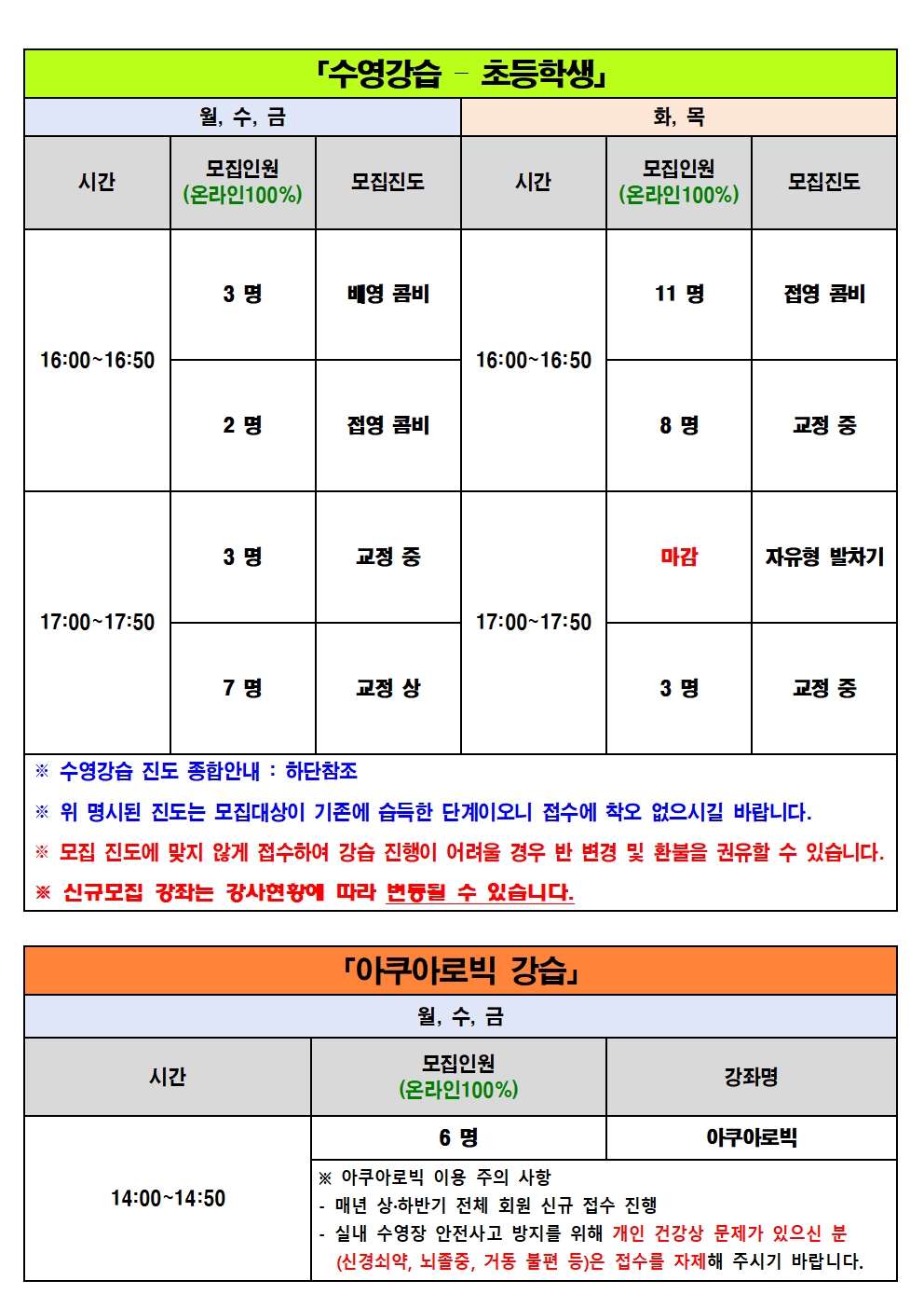 2025년 10월 수영 프로그램 회원(신규) 접수 안내