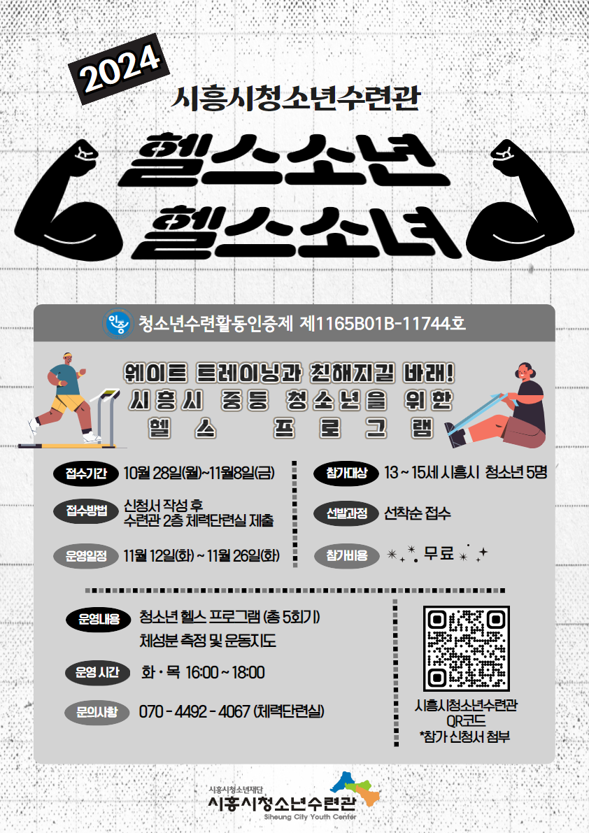 [2024 시흥시청소년수련관 청소년건강증진 프로그램 헬스소년&헬스소녀 참가자 모집]