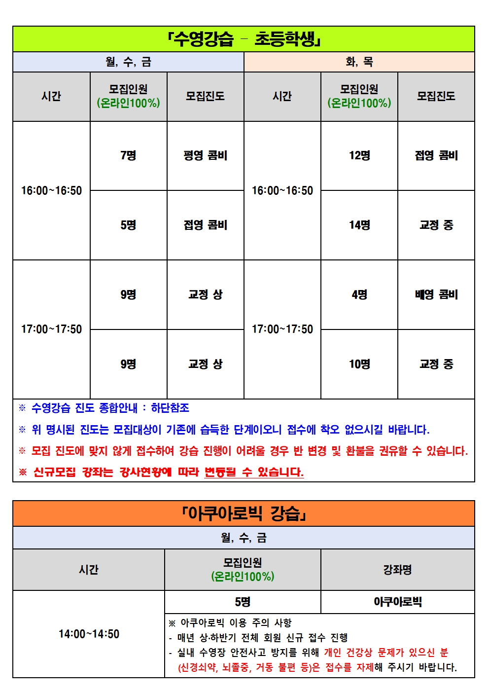 2025년 12월 수영 프로그램 회원(신규) 접수 안내