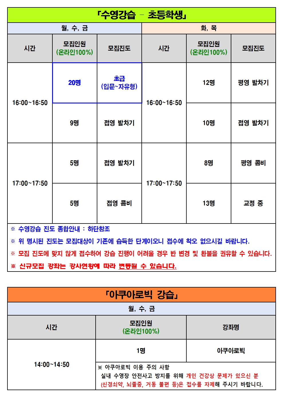 2025년 3월 수영 프로그램 회원(신규) 접수 안내